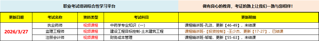 职业考试培训综合性学习平台,做有良心的教育,考证路上让我们一路与您相伴!